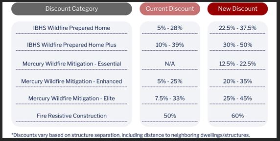 To help offset the rate adjustment—and to encourage safer, more resilient homes—Mercury is also introducing a new wildfire mitigation discount tier and increasing several existing discounts.